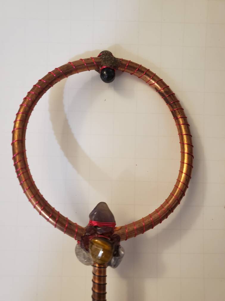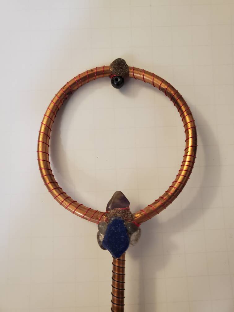 Natural patina accents and the hand-wound coil work combine to make this tool as visually striking as it is energetically potent.