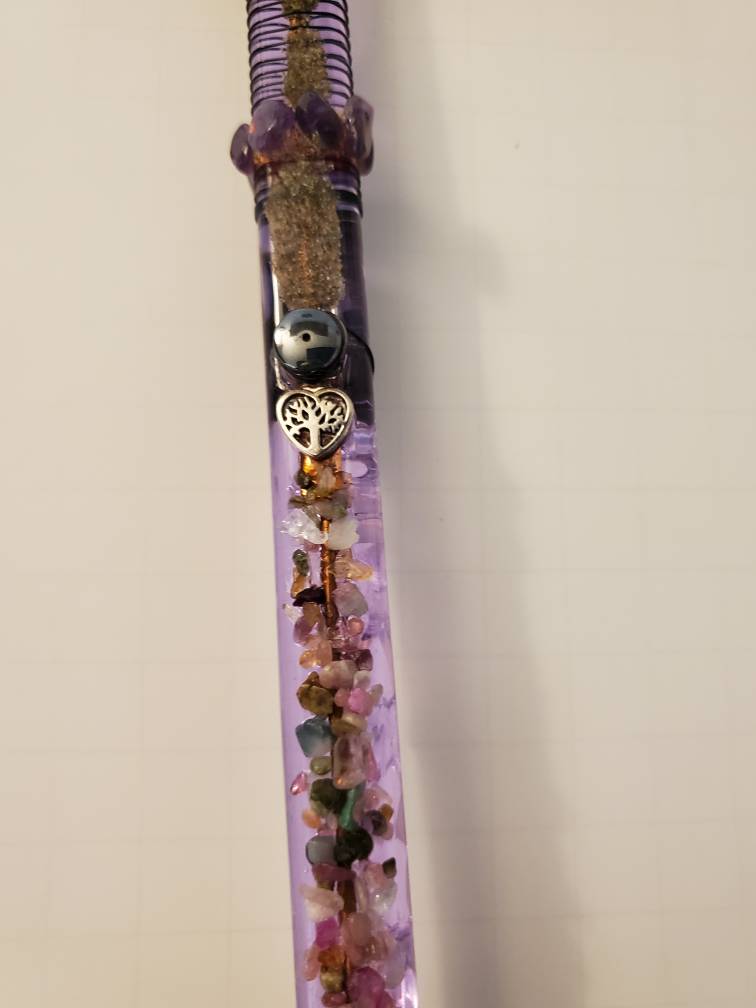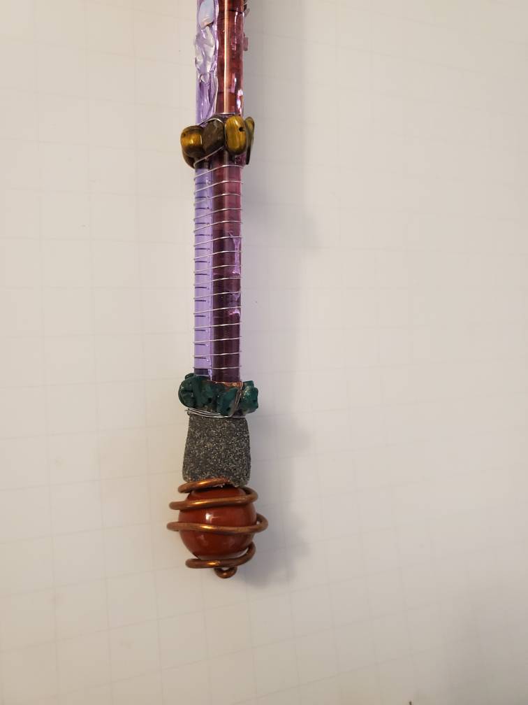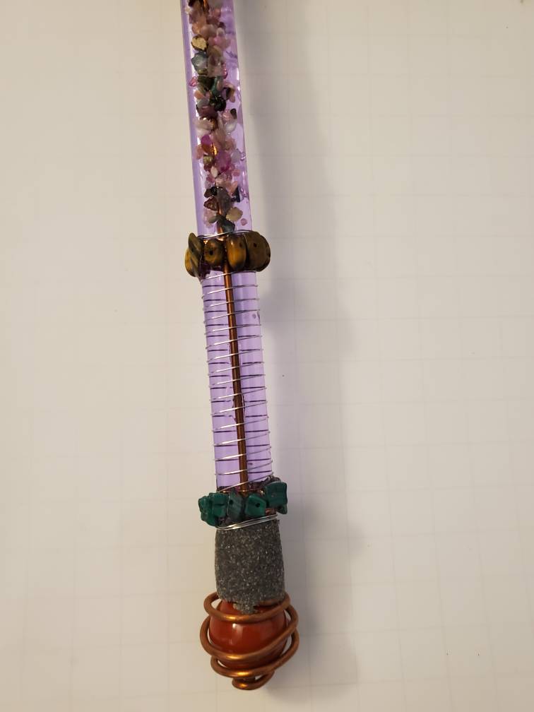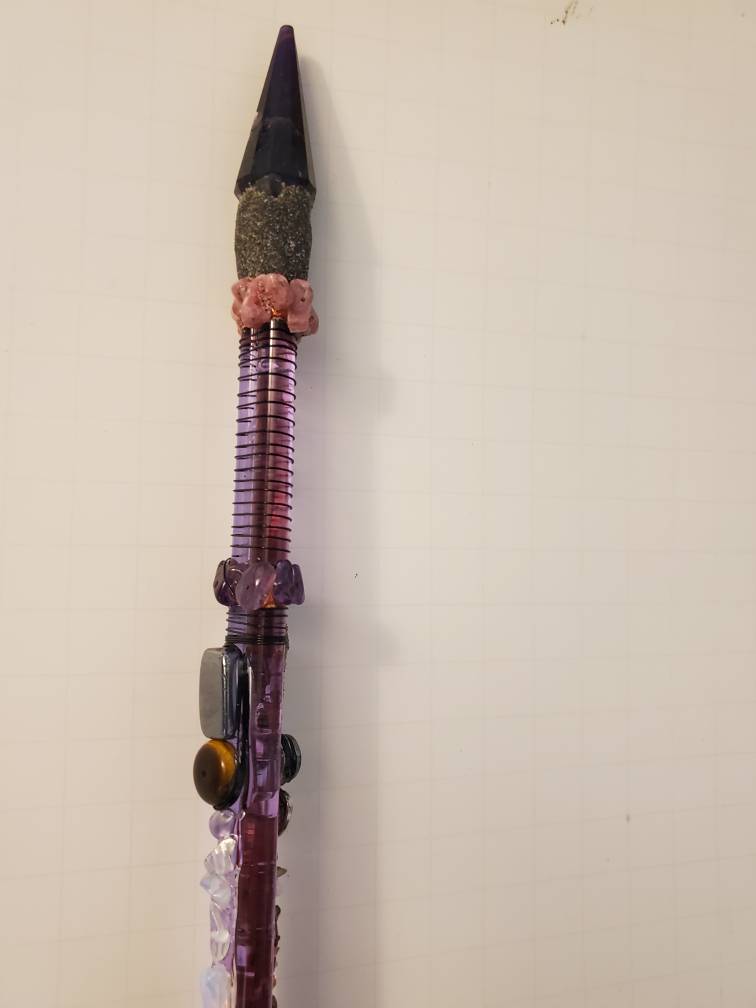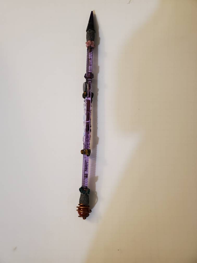This 24 cm wand is crafted from precision glass rods, featuring a tapered amethyst tip that condenses and projects “zapping” energy pulses—melding fire and water frequencies into a focused beam. A woven quartz matrix of pure silica threads encases the rod, acting as a cosmic computer to configure, store, and amplify multidimensional currents. Three opalite-infused copper coils at the distal end form a toroidal vortex that confines energy and induces interdimensional flux.